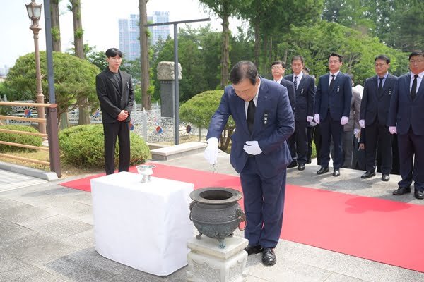 [Mobile Reporter Nam Nan-woo] Sejong Special Self-Governing City held a memorial ceremony at Chungryeong Tower on the 6th to mark the 69th Memorial Day, and Mayor Choi Min-ho laid a wreath and observed a moment of silence.